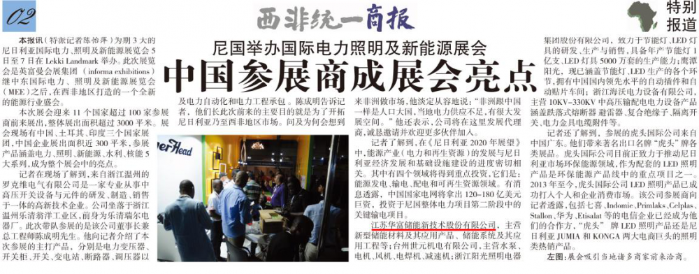 展會期間,我們旨在與客戶面對面,一對一進行洽談合作,此次展會增加了華富產(chǎn)品在非洲各國的影響力。華富儲能應邀接受了《西非統(tǒng)一商報》及尼日利亞當?shù)孛襟w的采訪,對外媒的對中國企業(yè)的認同,倍感驕傲。華富將繼續(xù)為非洲電力及新能源發(fā)展貢獻力量。
