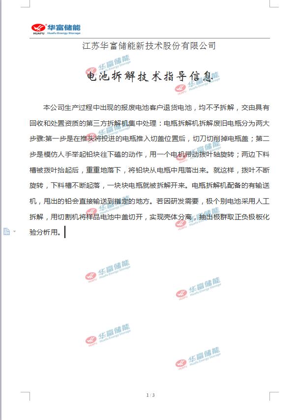 電池拆解技術指導信息